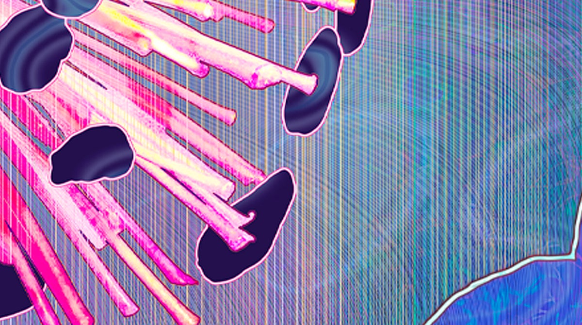 Unseen – Fruits of Boundlessness is opgebouwd uit macrofoto’s van vruchtenschillen, gegoten verf en een handgemaakte schets, die digitaal verder zijn bewerkt.