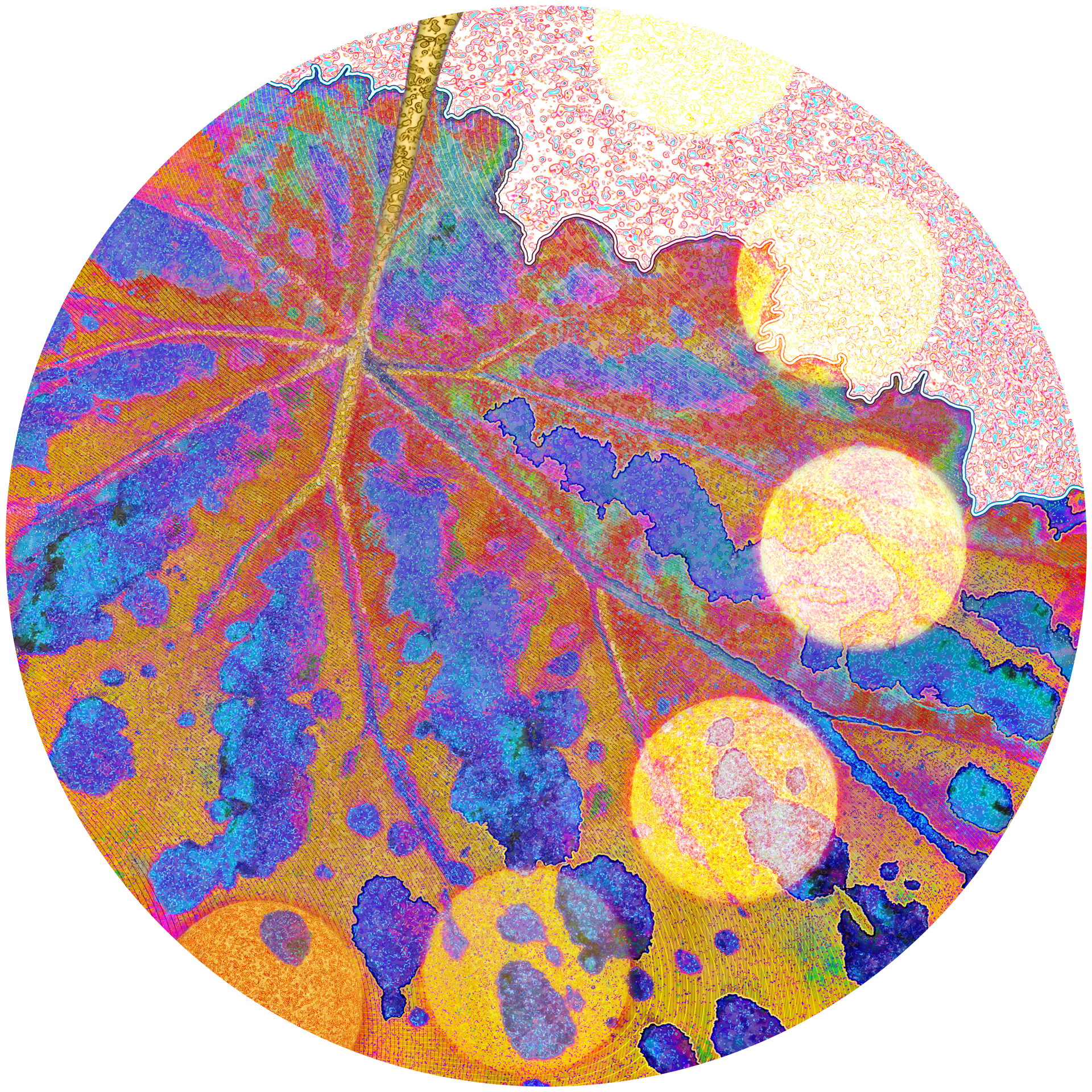 Unseen – Fruits of Boundlessness is composed of macro photographs of fruit peels, poured paint and a handmade sketch, which have been digitally edited.