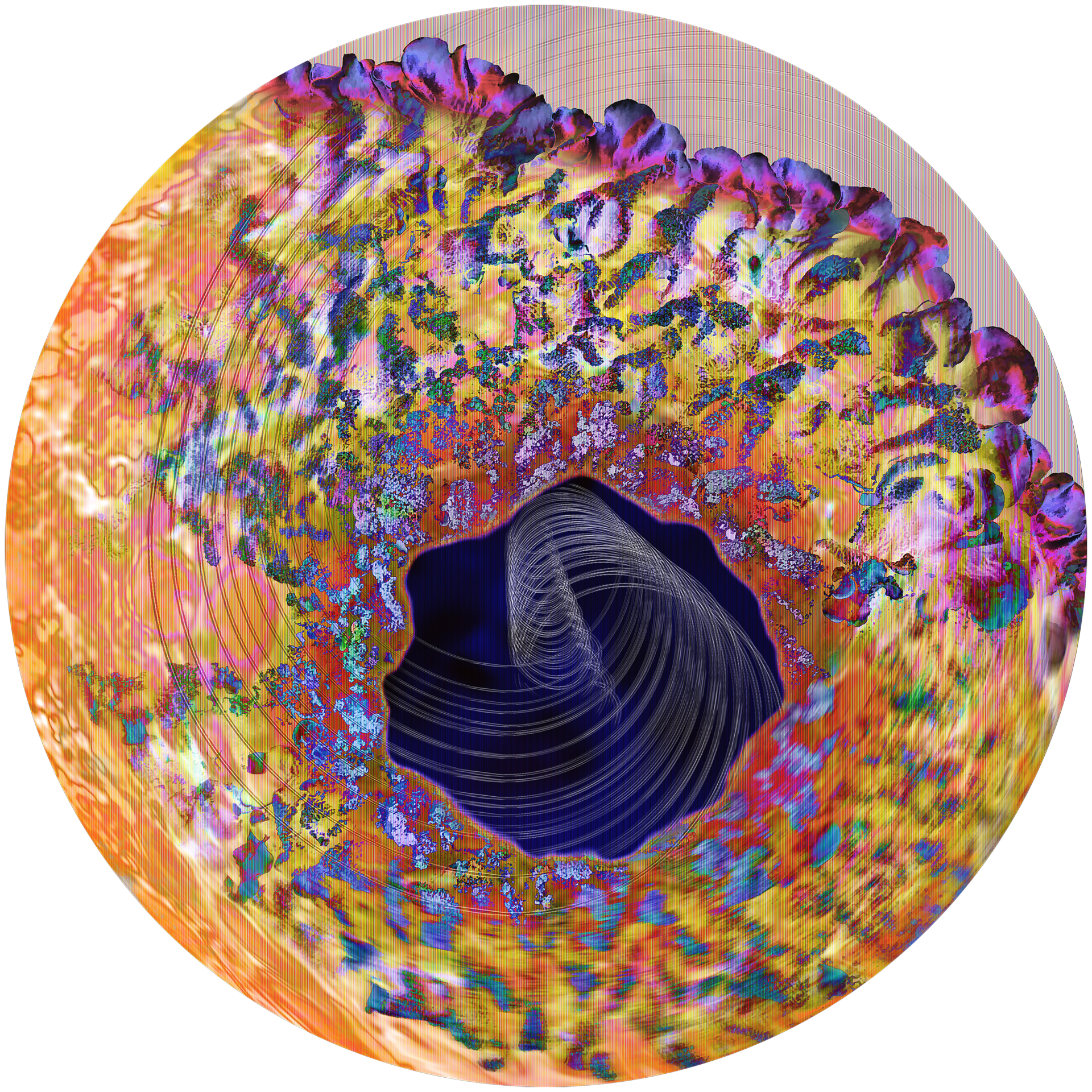 The sun as a living organism. According to ancient myths, the sun we see is the radiant vehicle of a divine consciousness – a focal point of life, connecting everything in the solar system through its rays. My work is an artistic representation of this idea. I see it as a symbol of life within life, of interconnectedness, of streams within streams: Panta Rhei.